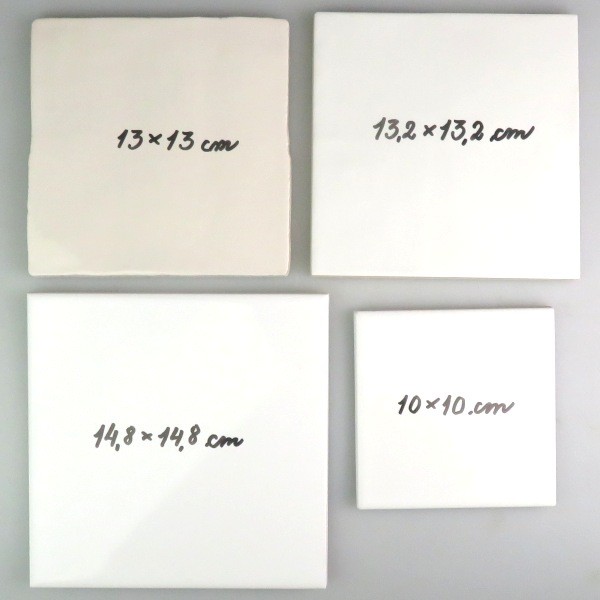 - - 13,2 x 13,2 cm blank hvid flise med en let bølget overflade, der giver et mere "levende" udtryk.