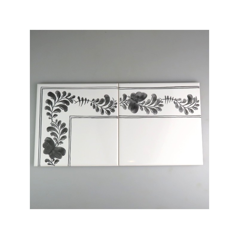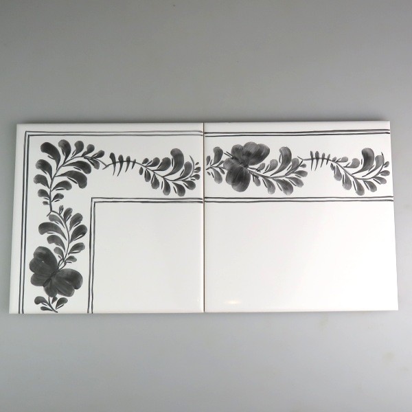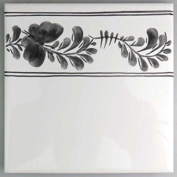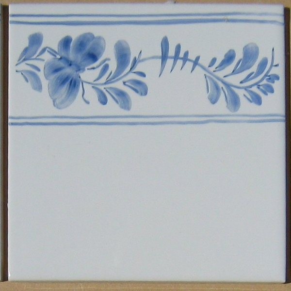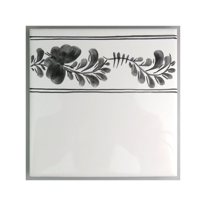 Denne dekoration er tiltænkt et lige forløb i en flisebort. Placeres de dekorerede fliser i et bånd på tværs af badeværelset eller køkkenvæggen, kan du med enkle midler tilføre væggen et smukt og personligt præg til en meget rimelig pris, da alle de øvrige fliser blot er hvide.