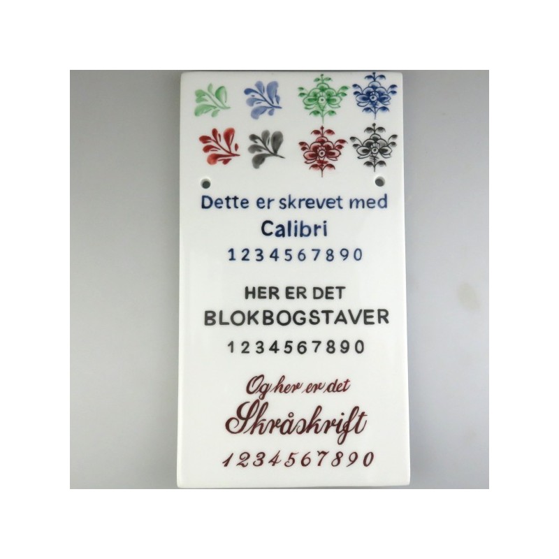 Et af billederne viser de forskellige skrifttyper og farver. Klik på billedet, hvis du vil se det i stor størrelse.