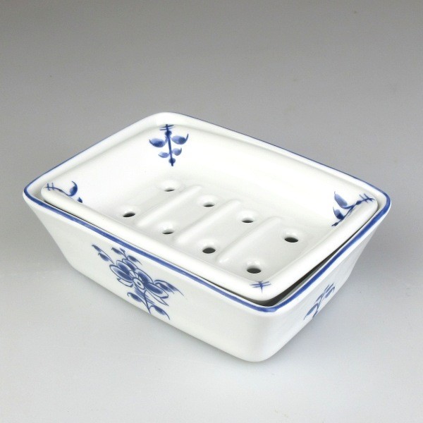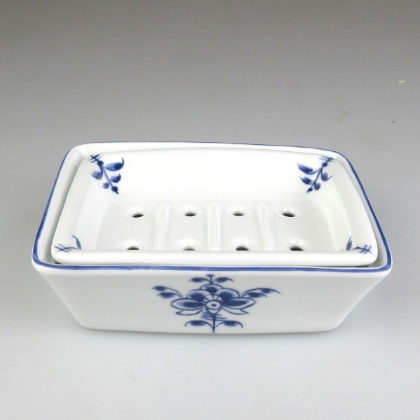Sæbeskålen er håndlavet i fint porcelæn på en lille sydtysk porcelænsfabrik, og i mit værksted på Møn har jeg dekoreret porcelænet og brændt dekorationen ind i glasuren.